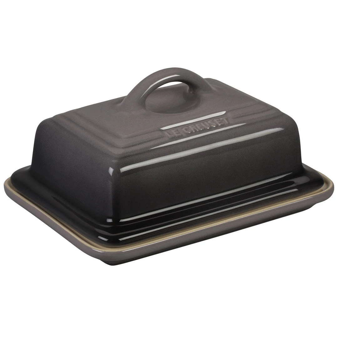 Decorative yet functional, this stoneware butter dish can go from refrigerator to microwave to table. The European style is designed to hold two sticks of butter.