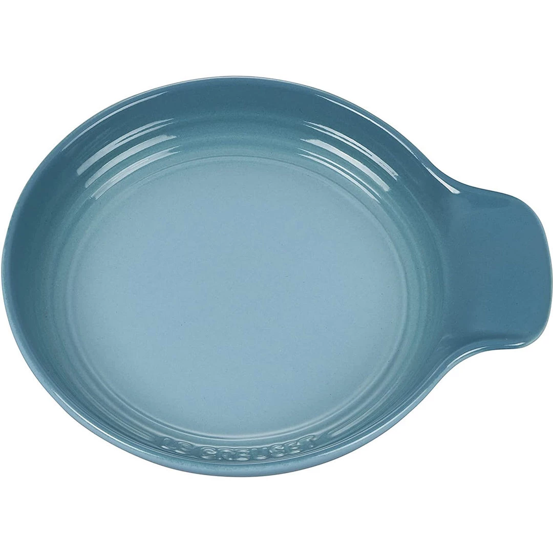 Whether stirring sauces as they simmer or serving family meals at the table, the Signature Spoon Rest is a decorative way to keep tablecloths and countertops clean when setting down utensils. Its specially grooved handle rest keeps spoons, spatulas, and ladles from sliding, while the wide round bowl contains food and drips. Crafted from the finest quality stoneware in our iconic colors, the spoon rest is finished with a vibrant glaze that is easy to clean, dishwasher-safe, and resistant to chips, scratches, and stains.
