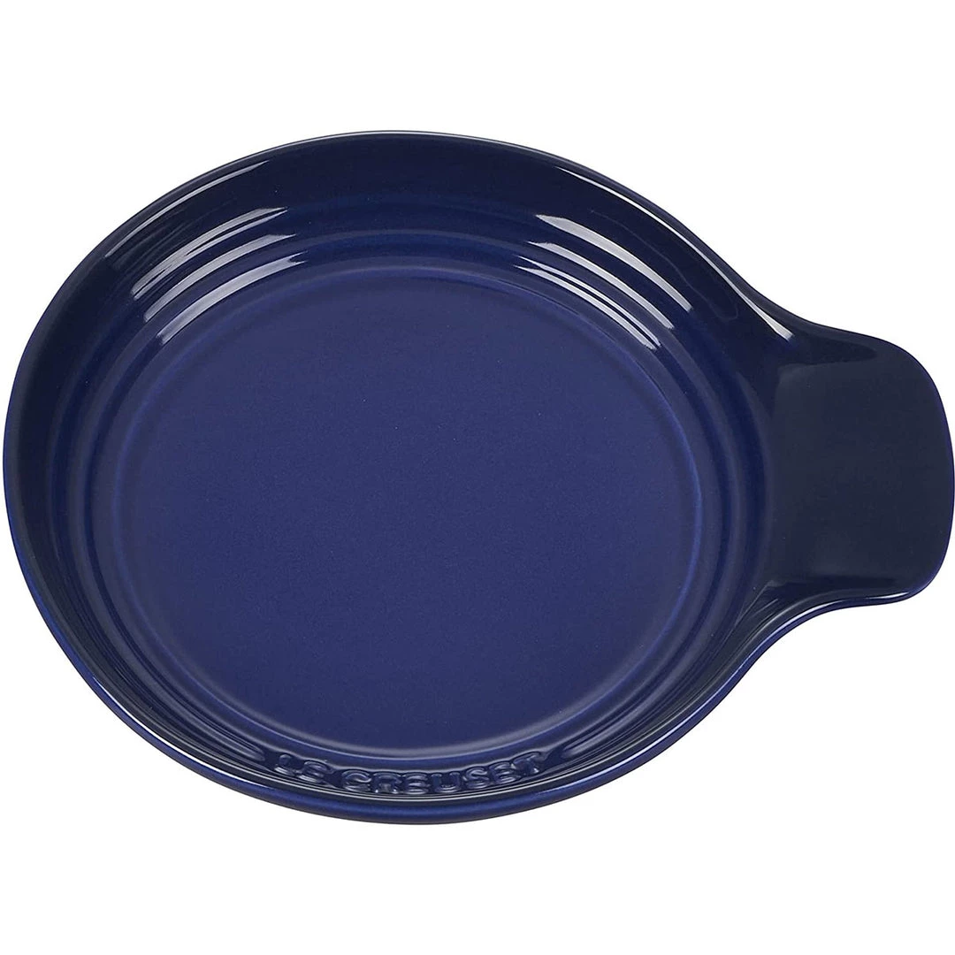 Whether stirring sauces as they simmer or serving family meals at the table, the Signature Spoon Rest is a decorative way to keep tablecloths and countertops clean when setting down utensils. Its specially grooved handle rest keeps spoons, spatulas, and ladles from sliding, while the wide round bowl contains food and drips. Crafted from the finest quality stoneware in our iconic colors, the spoon rest is finished with a vibrant glaze that is easy to clean, dishwasher-safe, and resistant to chips, scratches, and stains.