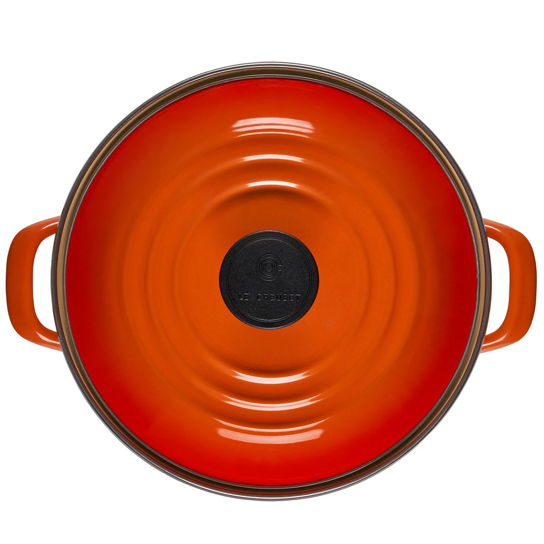 Le Creuset enamel on steel stockpots are finished in the same bold palette of signature colors as Le Creuset enameled cast iron, making them perfectly stylish complements to any combination of cookware.
