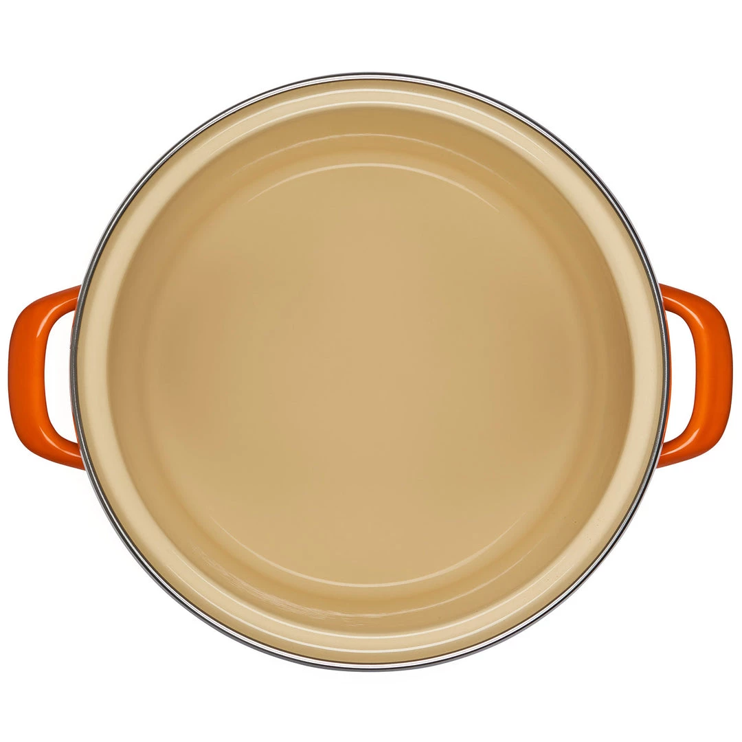 Designed to function efficiently on a full range of heat sources, enamel on steel stockpots are not only resistant to wear and damage, but also versatile enough for any type of stovetop, old or new. Their high-profile design limits evaporation while forcing liquids to bubble through all layers of ingredients, infusing the entire dish with flavor during cooking.