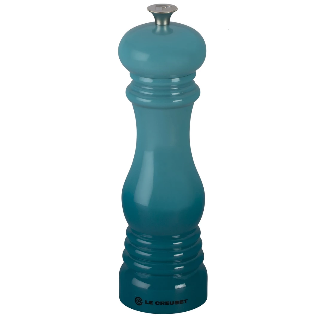 Le Creuset salt and pepper mills combine classic form and modern technology with our iconic colors. The ceramic grinder is strong enough to crack peppercorns and corrosion-resistant for grinding salt. Adjust the grind setting with a turn of the knob – clockwise for a finer ground and counterclockwise for a coarser grind.