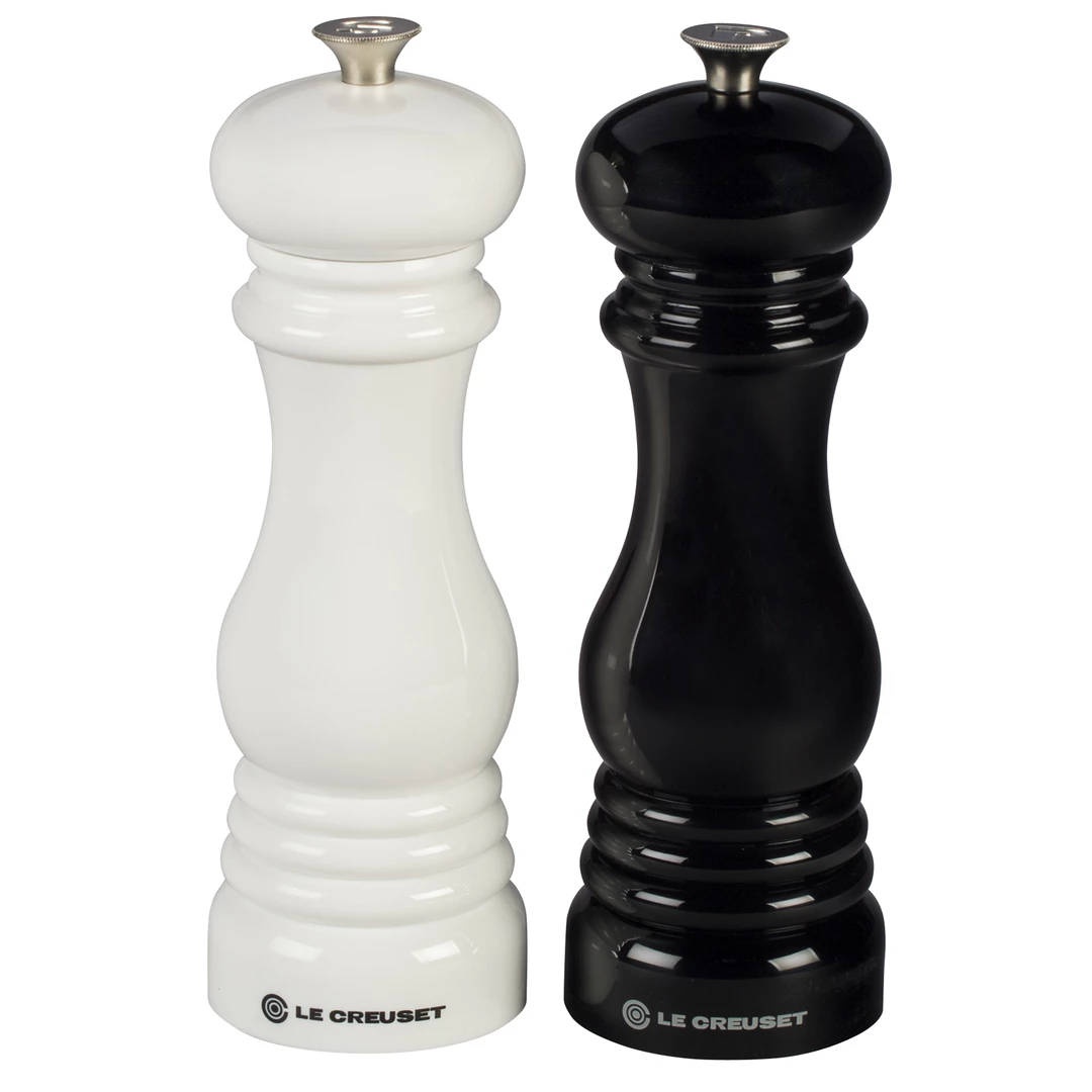 Le Creuset salt and pepper mills combine classic form and modern technology with our iconic colors. The ceramic grinder is strong enough to crack peppercorns and corrosion-resistant for grinding salt. Adjust the grind setting with a turn of the knob – clockwise for a finer ground and counterclockwise for a coarser grind.