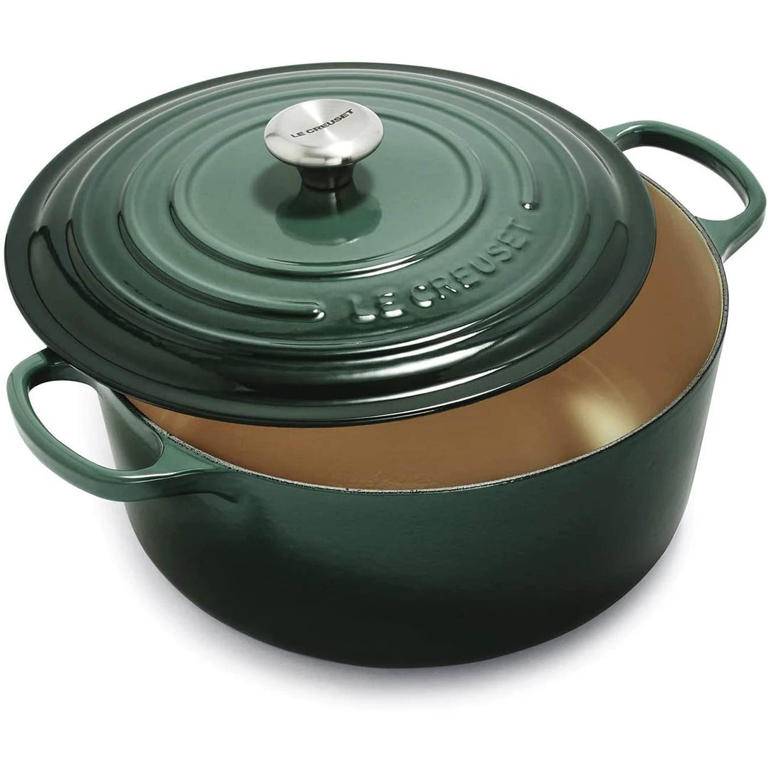 Designed specifically to enhance the slow-cooking process by evenly distributing heat and locking in the optimal amount of moisture, the Signature Collection round French Oven blends the best of the past with the latest innovations for comfort and functionality. Handcrafted one at a time inside our Fresnoy-Le-Grand foundry for nearly a century, Le Creuset round French Ovens have been a fixture in homes and restaurants around the world for generations. Their enduring quality, wide-ranging versatility, and stylish colors have made them indispensable in the kitchen and cherished around the table.