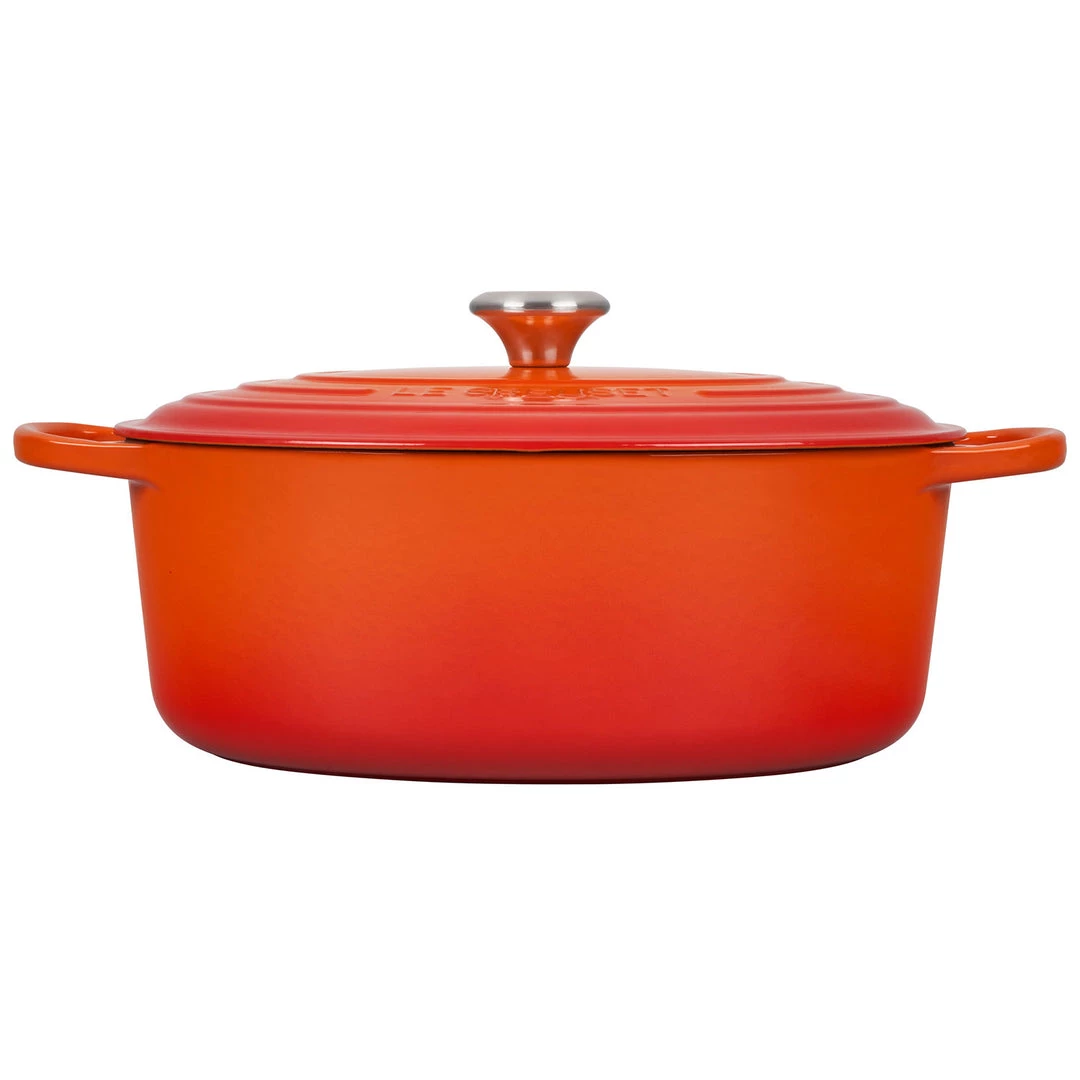 This updated kitchen classic enhances the cooking process by evenly distributing heat and locking in the optimal amount of moisture. With ergonomic handles and an advanced interior enamel that resists chipping and cleans easily, Le Creuset’s Dutch ovens blend the best of the past with the latest innovations in comfort and functionality. The perfect shape for most roasts and poultry, the oval Dutch oven is an ideal piece to have.