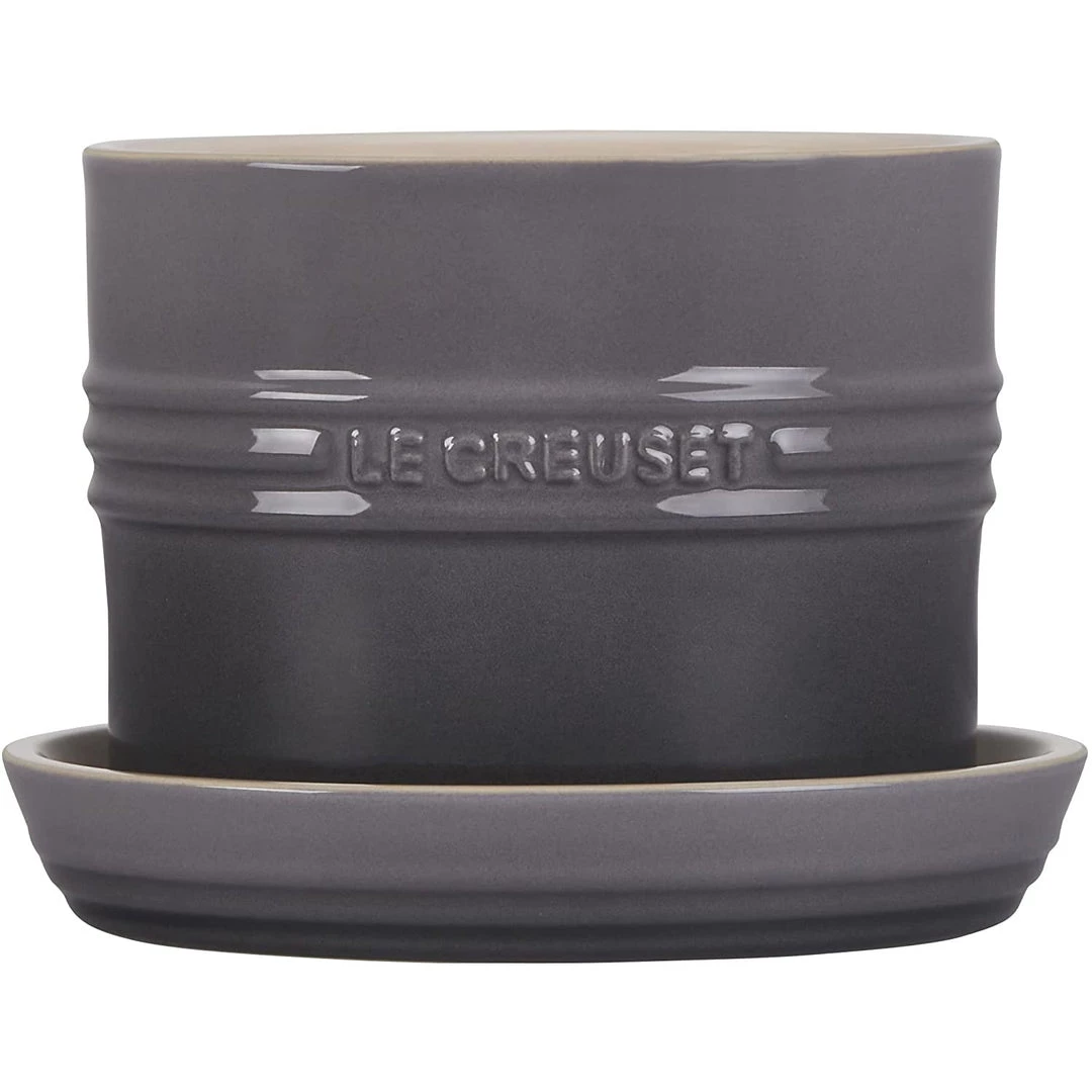 Brighten your kitchen window sill with fresh herbs, flowers, and plants grown in the Le Creuset Herb Planter with Tray. The larger 5.5-inch pot is the perfect size for small herbs and plants, and the attached tray collects extra water and keeps roots moist. Crafted from the finest quality stoneware and finished with a vibrant glaze that is easy to clean, dishwasher-safe, and resistant to chips, scratches, and stains.