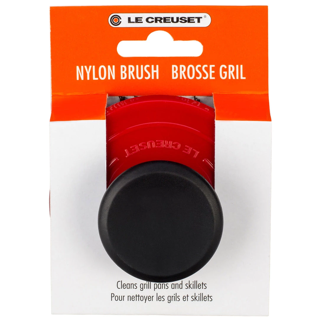 The grill pan brush has tough, durable bristles that make quick work of removing stuck-on foods from cast iron cooking surfaces. It is especially helpful when cleaning between the ridges of cast iron grill pans.