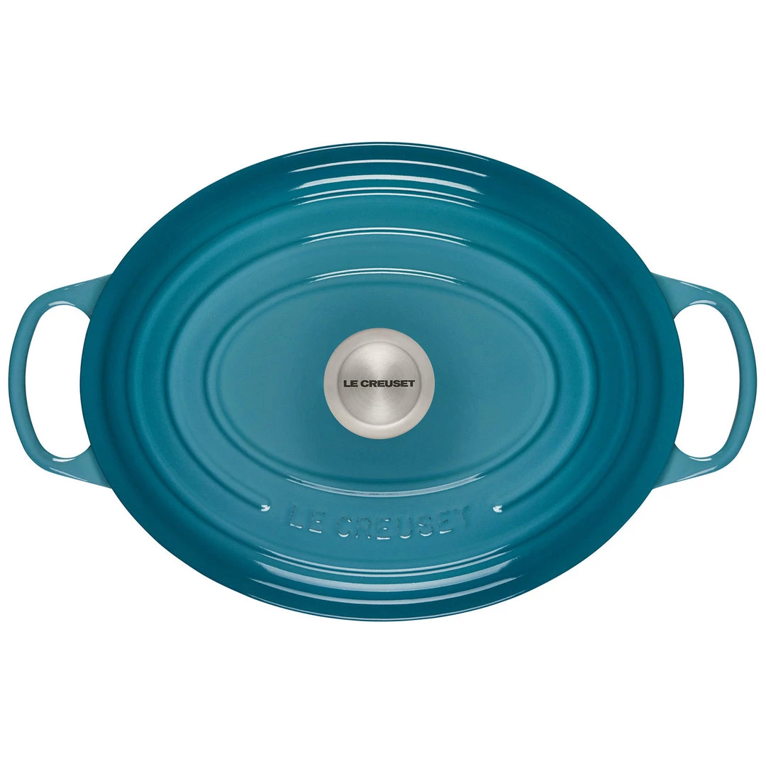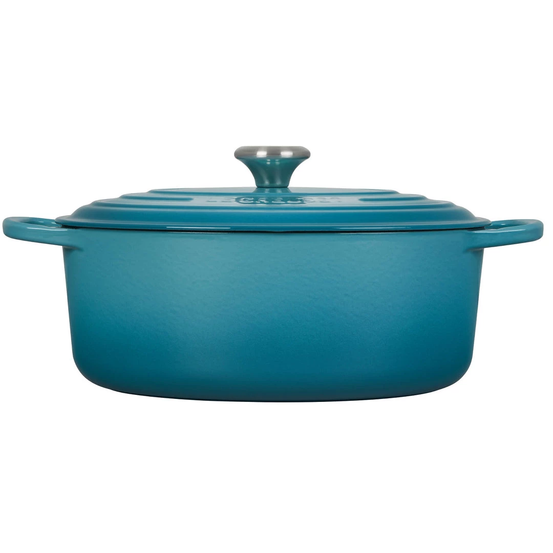 The iconic Le Creuset Dutch oven is indispensable in the kitchens of home cooks and professional chefs alike. Long recognized for its strength and durability, cast iron is the prime material for slow-cooking, braising and roasting, thanks to its ability to maintain even and consistent heat. The enameled Dutch oven needs no seasoning, and it’s suitable for both stovetop and oven use. The oval shape is particularly suited to longer cuts of meat or poultry.