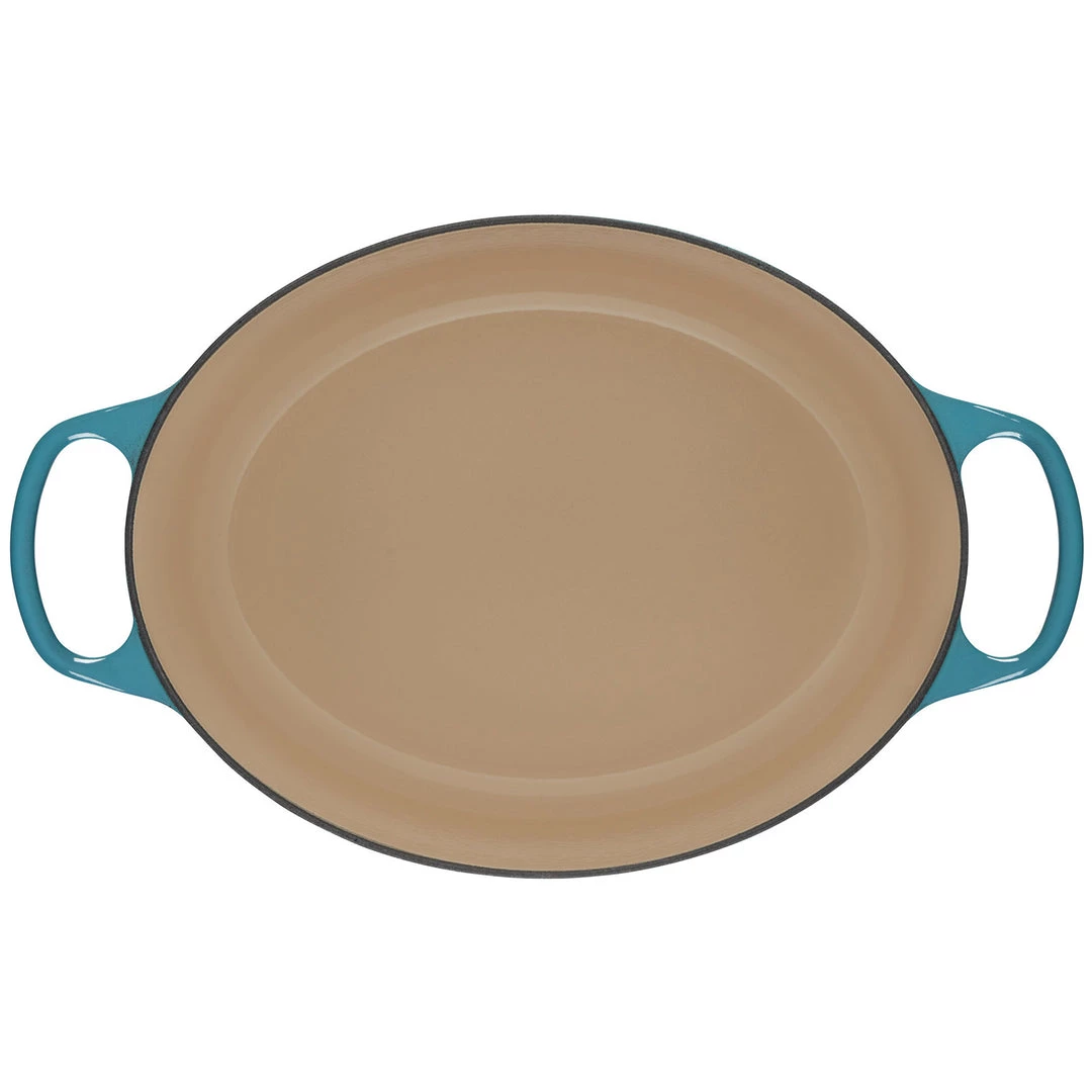 - Sand-colored interior enamel has a smooth finish that promotes caramelization, prevents sticking and resists stains
