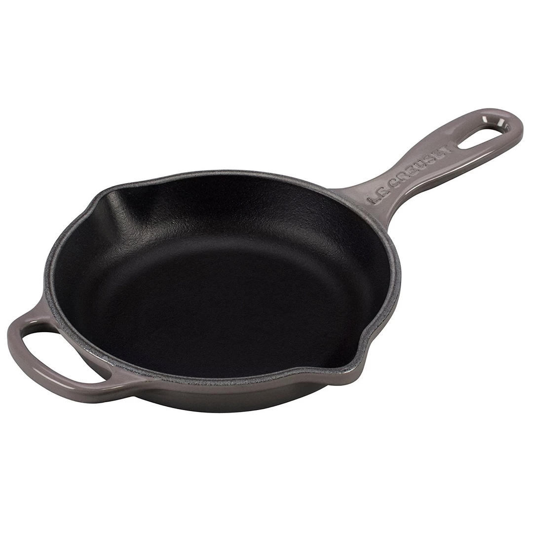 Cast iron skillets have long been treasured kitchen staples for stovetop frying and oven baking. Over time, the matte black interior enamel develops a natural patina that is ideal for searing and frying. Pour spouts on two sides allow for drip-free pouring.