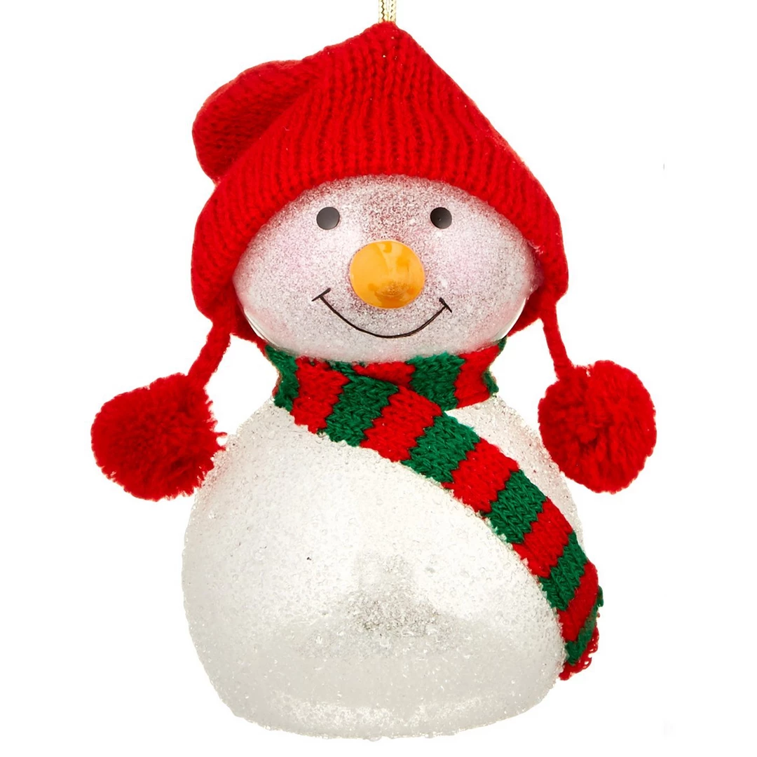 Glowing and smiling, the Wonderball Snowman in Red Knit Hat Lighted Ornament is a perfect addition to your holiday tree. Crafted of shimmering glass with a fabric red hat and scarf, this lighted snowman ornament shines with an LED display. Makes a wonderful gift.