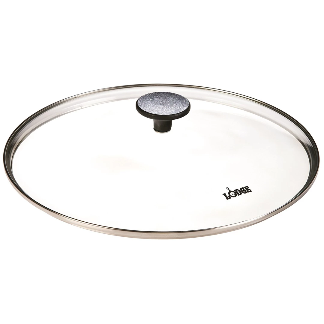 This 12 inch glass lid is tempered for safety. Dishwasher safe. Stainless Steel rim protects glass edge. Knob is oven safe up to 400 degrees Fahrenheit. Fits standard Lodge 12″ diameter skillets and dutch ovens.