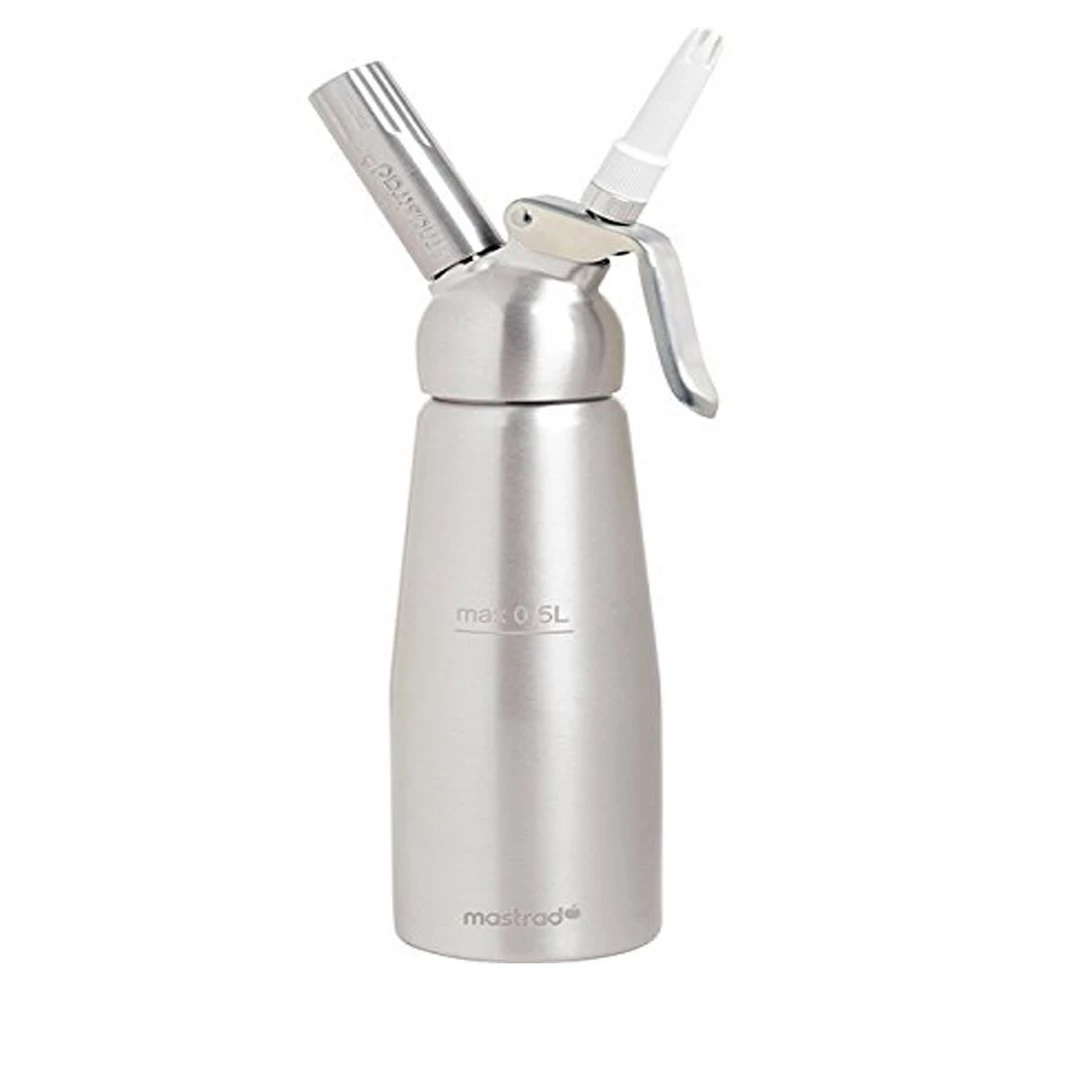For hot and cold mousses, creams, sauces. Interior is anodized for added durability. Cleverly designed charger holder is flat on one side to prevent rolling on countertops. Includes: 1 aluminum whipper, 1 cleaning brush and 3 nozzles Aluminum structure allows warming temperatures up to 120â°F/50â°C