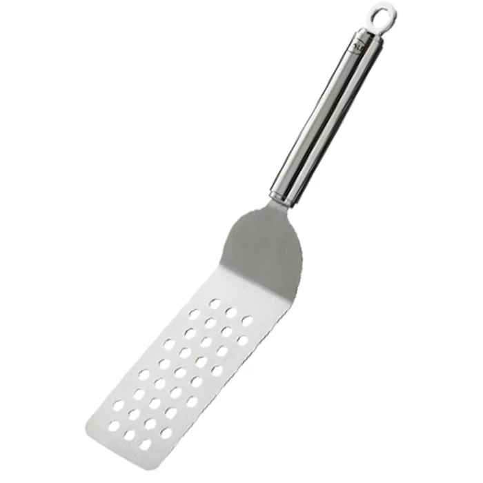 The angled blade allows easy lifting out of pans, moulds or baking trays. Fats and liquids drain easily through the perforations.