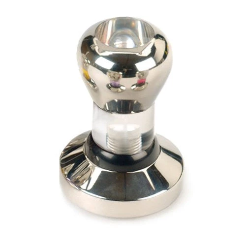 Acrylic Top & Body: 58mm dia., convex bottom tamper, 18/8 stainless steel with clear acrylic accent. Hand wash.