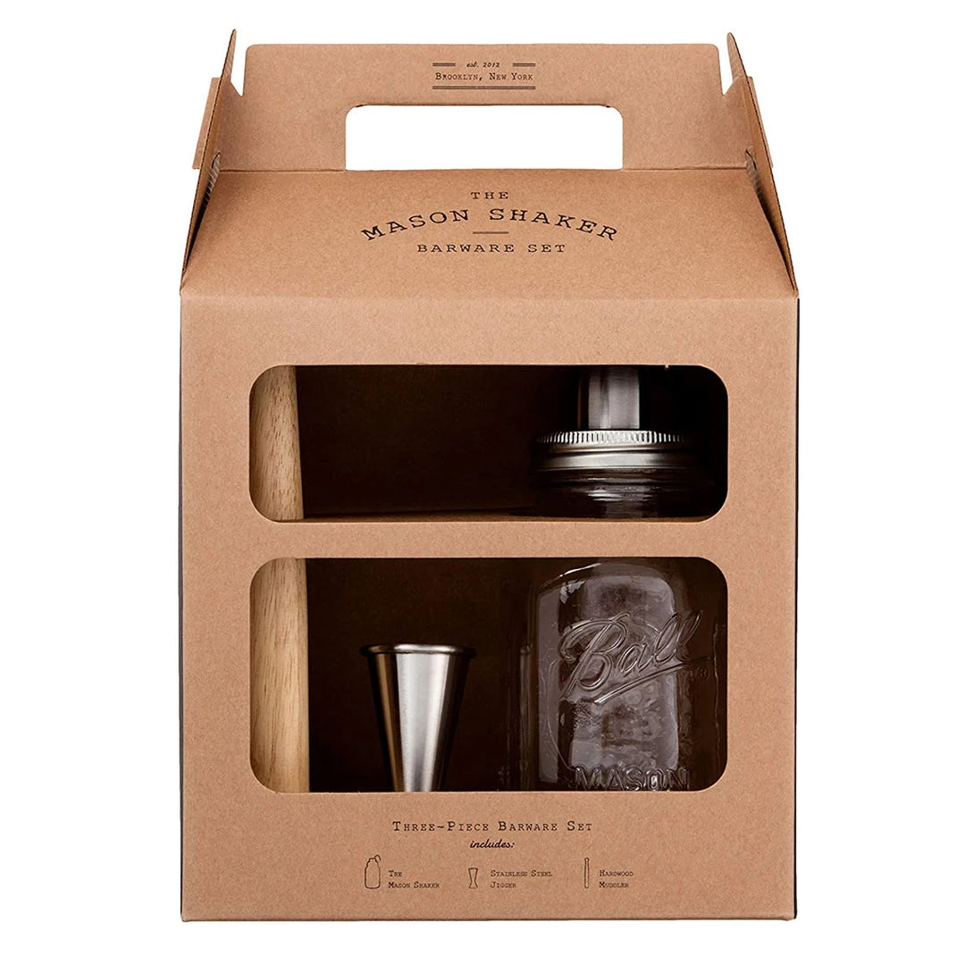 - The Barware Set includes the Mason Shaker, our Muddler and Jigger, everything necessary to start crafting delicious cocktails.