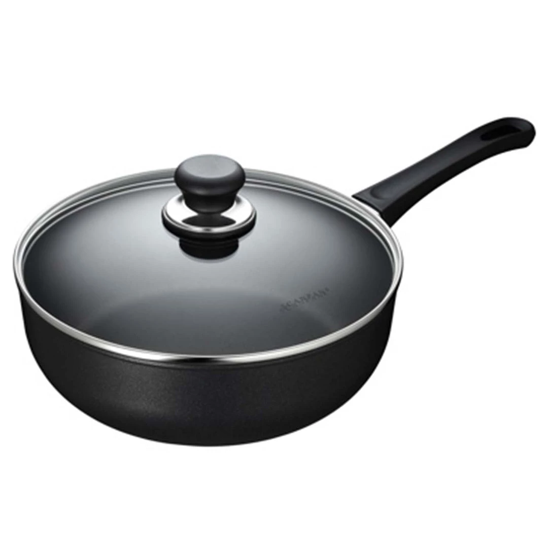 A sauté pan with extra high edges that make this pan very suitable for dishes that need stirring. It also has a good frying surface for browning meat.