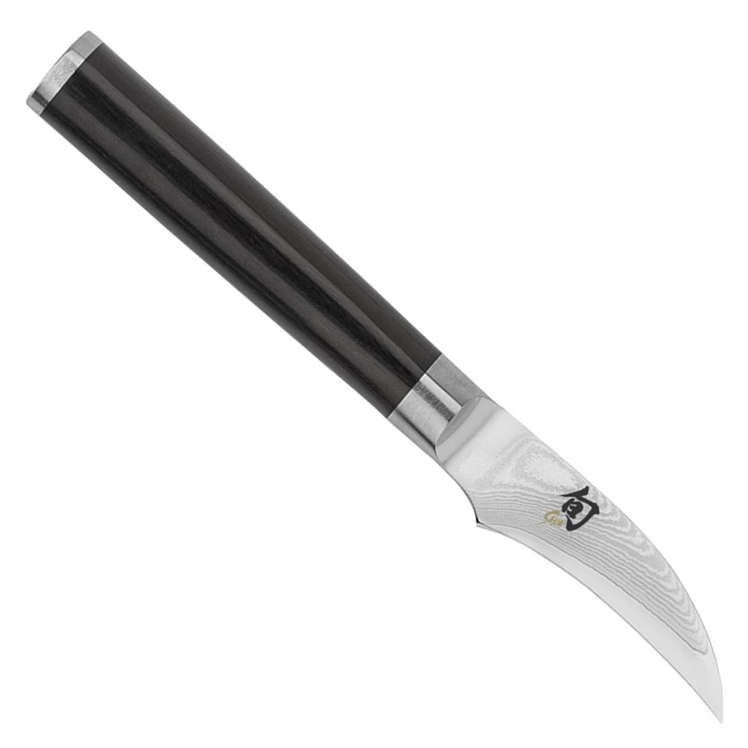 The Shun Classic 2.5-in. Bird’s Beak Knife is part of the Shun Classic line of tasteful and contemporary cutlery.The Shun Classic line features beautiful Damascus-clad blades and D-shaped ebony PakkaWood handles. Yet behind these handcrafted knives’ beauty is function: razor-sharp blades offering top performance. Shun’s proprietary high-performance VG-MAX steel, which provides incredible edge retention, is clad with Damascus stainless steel, then ground and bead-blasted, revealing the flowing pattern of the layered steel. The result is a line of knives that are sharp, durable, and corrosion resistant, as well as beautiful to behold. The Shun Classic line also offers you the widest assortment of both traditional culinary blade shapes and cutting-edge designs, so you can always find the right knife for the task.