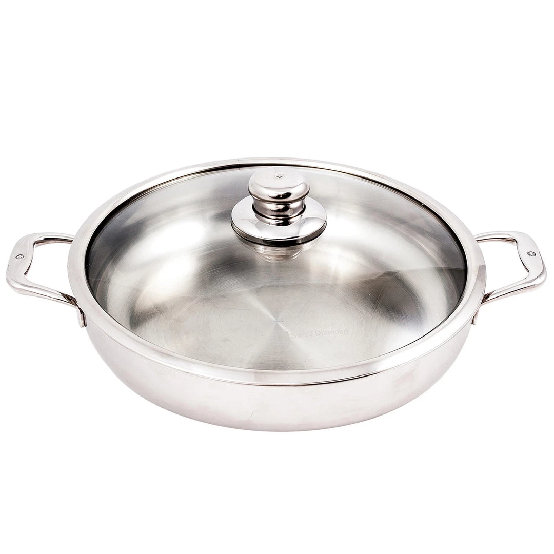 Combining the design elements of a fry pan, saucepan and a wok, the Premium Clad Chef’s Pan is extremely versatile and effortless to use. Welded cast stainless steel handles are ergonomically designed to fit comfortably in your hand and won’t loosen up over time. Maintaining a beautiful satin exterior finish from top to bottom, you can cook your favorite recipes in style. Premium Clad is also designed for use on all cooktops making it the perfect investment for wherever life takes you.