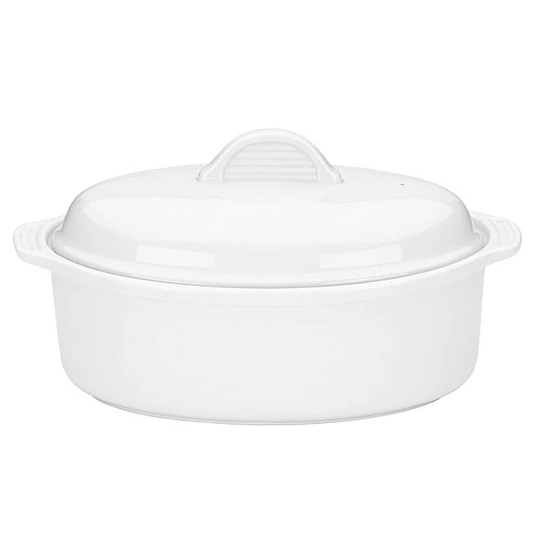 Entertain your guests with the lovely style of The French Chefs oval casserole. Crafted from porcelain, the white color and sophisticated look matches perfectly with existing serveware. The casserole is oven safe and microwave safe for baking and reheating. The perfect piece for serving elegant individual dishes, The French Chefs ramekin is dishwasher safe to make clean up a breeze and comes with a matching lid to keep your dish covered.