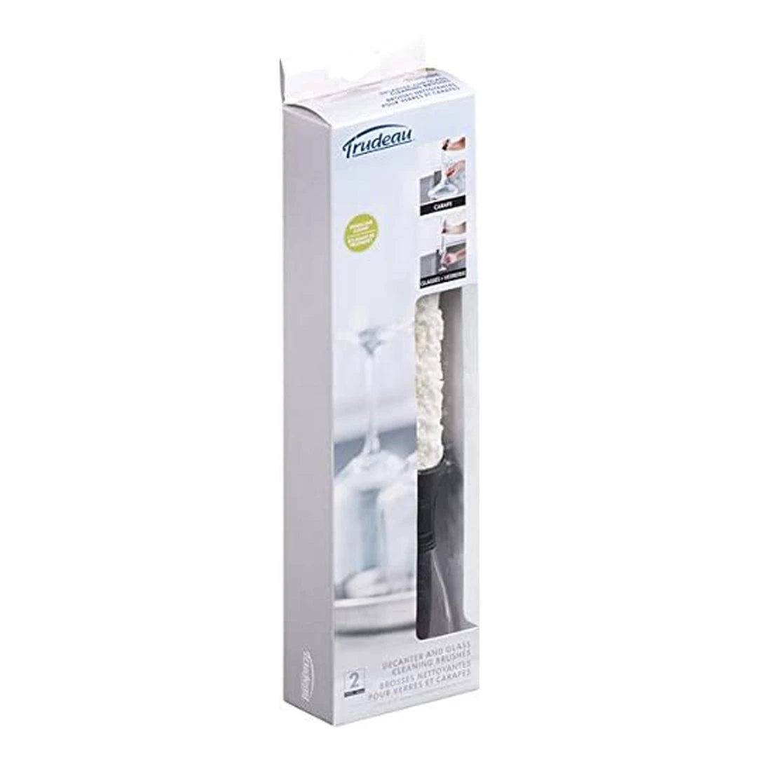 Clean your decanters and stemware to a spot-free shine with Trudeau’s Decanter and Glass Cleaning Brushes. Designed to clean using only hot water, these long, flexible brushes will leave your glassware sparkling clean. The flexible body allows you to reach into every nook and cranny, making hard-to clean decanters a breeze. The smaller brush is perfect for cleaning stemware such as wine glasses and champagne flutes. The self-standing handle means little to no mess on countertops-smart! Simply air dry when done. Set of two brushes included. Since 1889, Trudeau has developed visionary products that add and exciting flavor to your day. Trudeau draws inspiration from more than a century of know how. Style, elegance, innovation. Trudeau lets you savor life’s little moments.