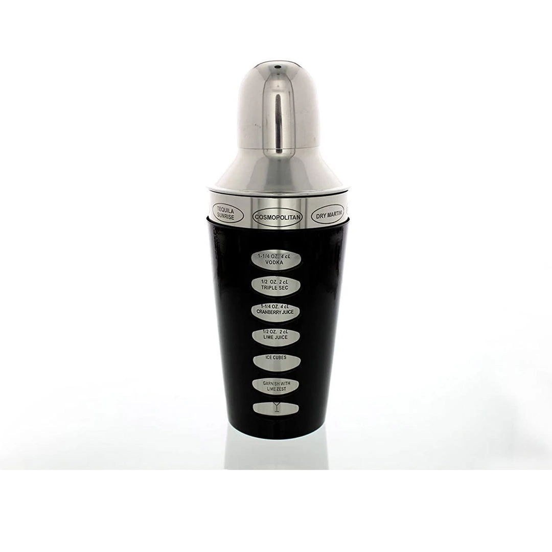 Raising the drink experience to an elevated level, the Elite Recipe Cocktail Shaker by Trudeau exudes elegance. Made of stainless steel construction, it features 8 trendy cocktail recipes around the shaker. Simply turn the black housing windows to the drink selection of choice, and each window shows a liquor and amount to create the recipe; there’s even a suggestion for the type of glass to serve it in! The strainer is designed to hold back ice for a consistent pour. The 20 ounce capacity is generous enough to make drinks for several people at once. A Trudeau original design, this cocktail shaker comes in a handsome gift box for gift giving. Since 1889, Trudeau has developed visionary products that add and exciting flavor to your day. Trudeau draws inspiration from more than a century of know how. Style, elegance, innovation. Trudeau lets you savor life’s little moments.