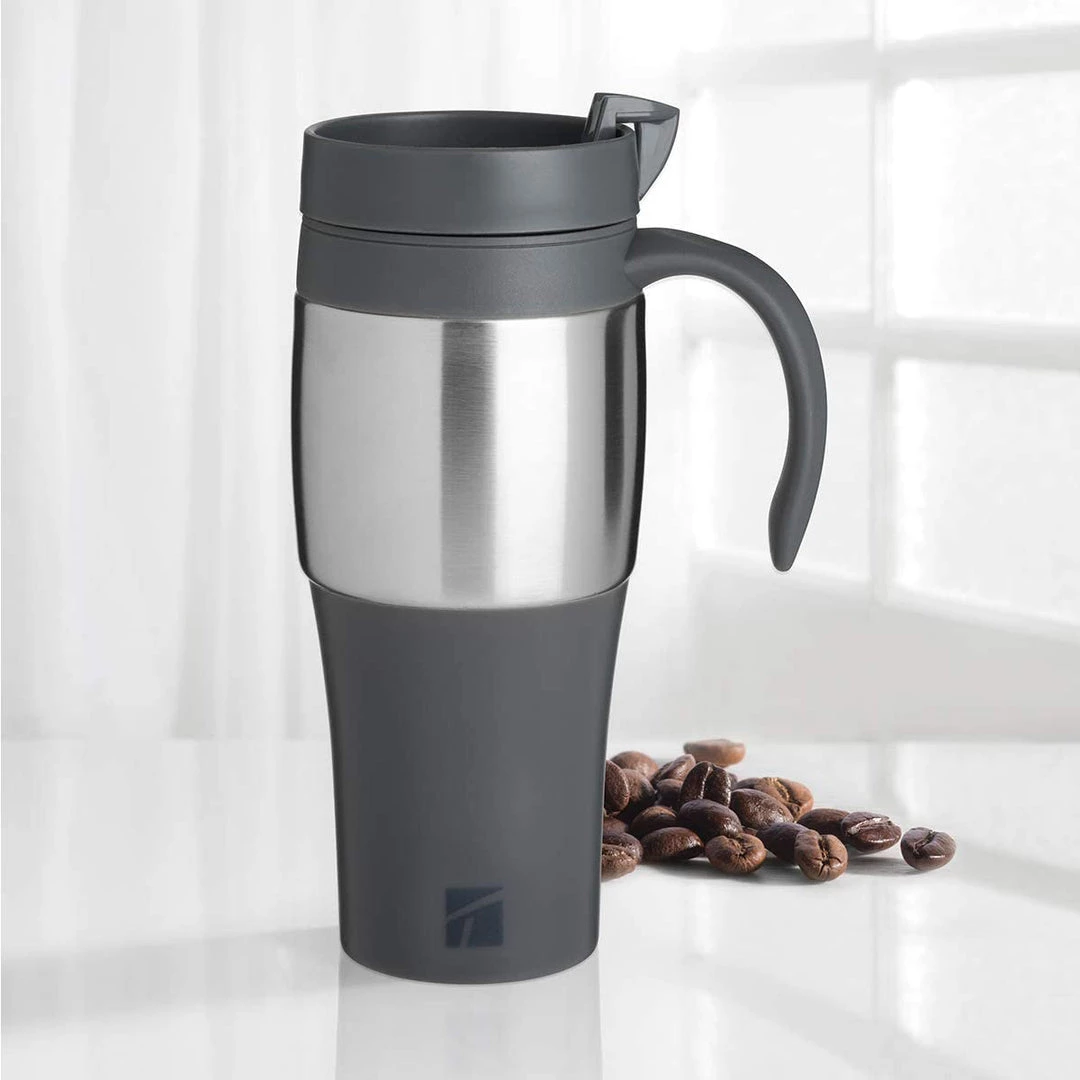 Carry your Coffee comfortably with Trudeau mariner travel mugs. Double-wall insulation creates a layer of insulation to the touch (stainless steel exterior and polypropylene interior) and drinks keep the temperature for up to 2 hours. Easy to operate large sliding opening knob on the lid makes it easy to Sip from and easy to seal. Trudeau mariner travel mug is a terrific travel companion for trips in the car or on foot. Bpa fee. Lifetime warranty.