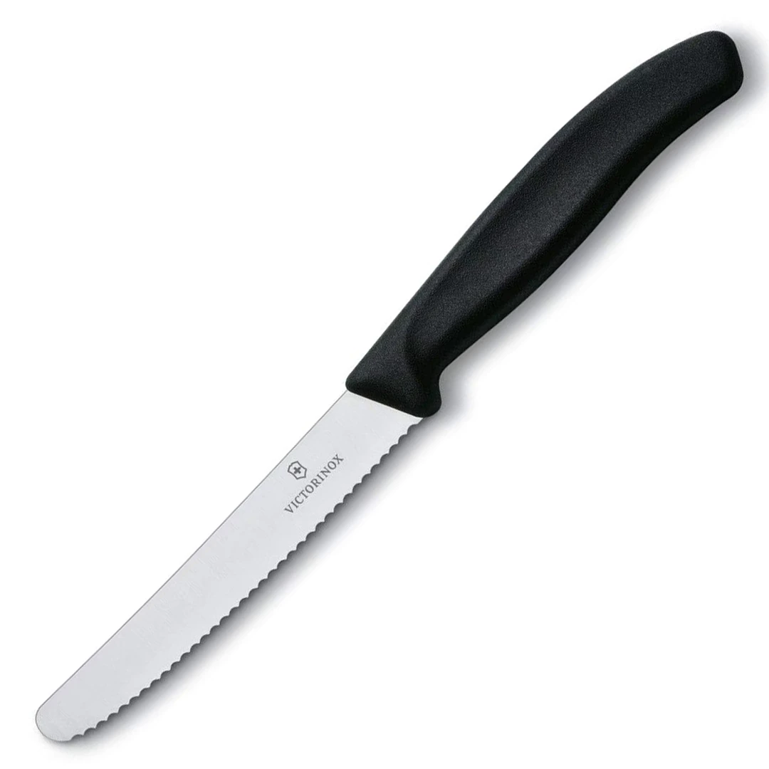 The Victorniox 4 1/2-inch Serrated Utility Knife is able to cut fruits, chop vegetables, or slice meats and never compromise the sharpness of its stainless steel blade. A necessity in every kitchen. The perfect tool for all small cutting jobs.
