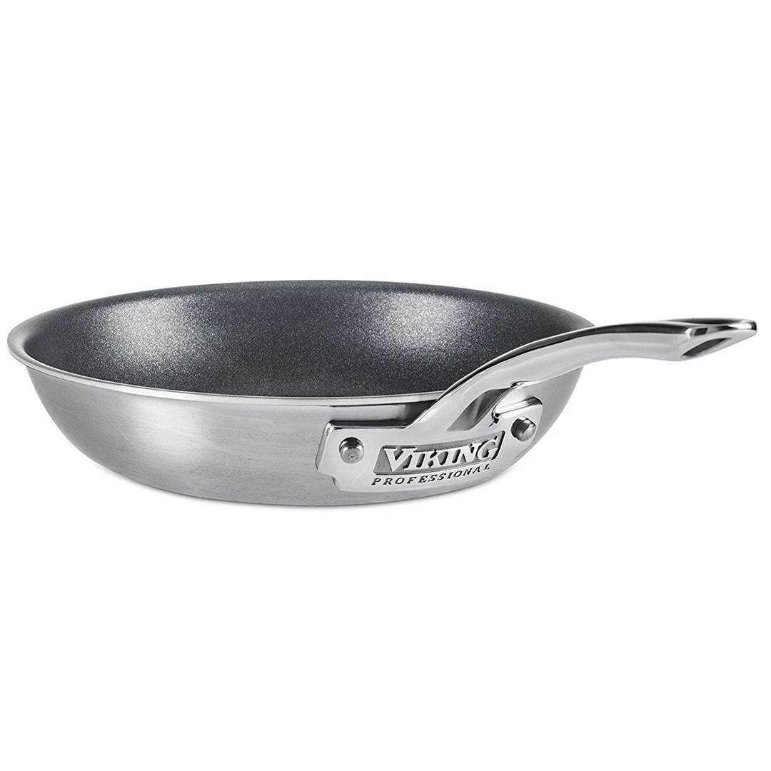 The Viking Professional Performance 5-Ply Stainless Steel Non-Stick Fry Pan features the PFOA free, Eterna non-stick coating surface making cooking easy by requiring minimum amounts of cooking oils or fats, yet retains the searing ability of a traditional fry pan. Viking Professional 5-Ply Stainless Steel Cookware combines four professional grade aluminum exterior layers with an 18/10 stainless steel interior, to deliver the elegance, performance and quality expected from the modern home chef. The performance of this cookware is driven by three layers of aluminum alloy, bonded between the magnetic stainless steel exterior layer and stainless interior, which work in unison to deliver optimal heat transfer and cooking performance. Professional 5-Ply Stainless Steel Non-Stick pans are safe for use on all cooktops including induction, in the oven or on the grill up to 500°F/260°C. This line features the Viking signature stay-cool handles, which are ergonomically designed to fit hands naturally to provide balance, leverage and grip. Viking Professional 5-Ply Stainless Steel Cookware is dishwasher safe, includes a manufacturer’s limited-lifetime warranty and is made in the USA. The Viking Professional 5-Ply 8 Inch Non-Stick Fry Pan provides the home chef with the ability to scramble eggs, to sauté vegetables, or to quickly sear meat or seafood to perfection before finishing in the oven. Designed with that versatility in mind, this fry pan combines low, flared sides for easy turning or stirring, along with a flat, nonreactive cooking surface that retains and distributes heat evenly. Viking, designed to deliver Professional Performance for Your Home.