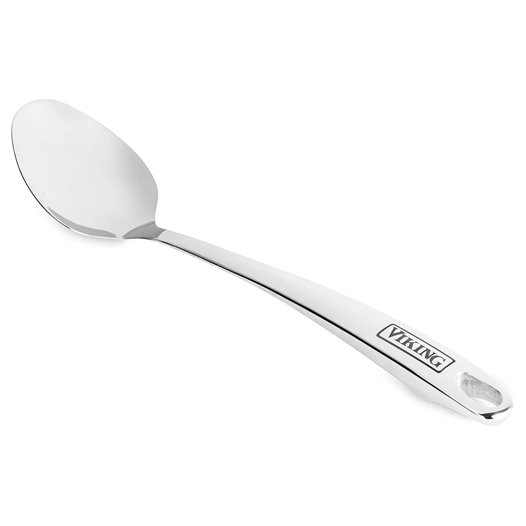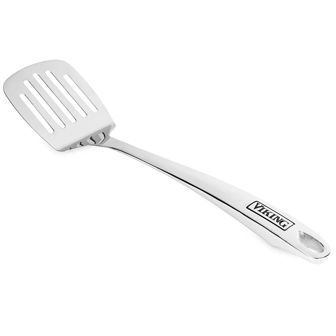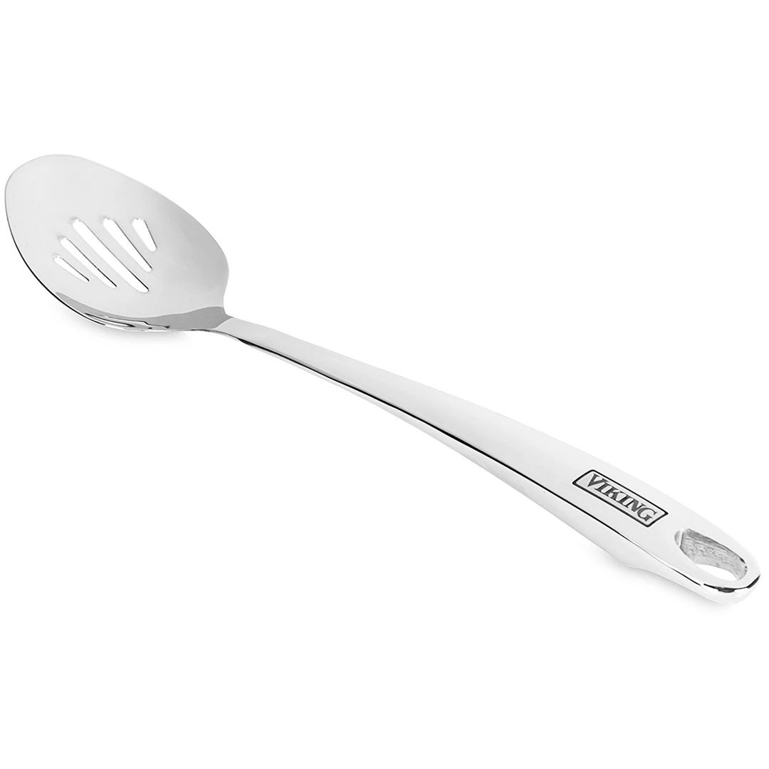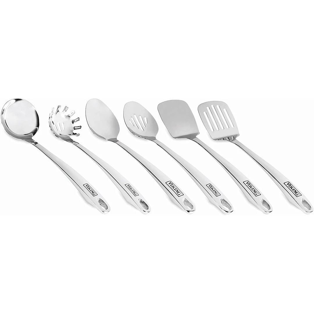 The Viking Culinary Stainless Steel Kitchen Utensil Set with Stay Cool Handles, 6 Tools deliver on the Viking promise of Professional Performance for the Home. Viking Culinary tools are designed for both function and durability. The large size of the tools make them easy to use with a variety of pot sizes while still having an elegant forged look makes them attractive enough to sit in a countertop crock. The set includes solid & slotted spoons, pasta fork, deep ladle, solid & slotted spatulas. Utensil length varies from 12.5 to 14.25 inches. The ergonomically designed stay cool hollow handles provide ease and comfort whilst working in the kitchen. The Viking Culinary line is backed by a lifetime warranty. Viking products began with a passion for cooking. Viking Culinary offers a full assortment of culinary products that deliver on the Viking promise of Professional Performance for Your Home. You Know our Kitchens; Now Discover our Cookware.