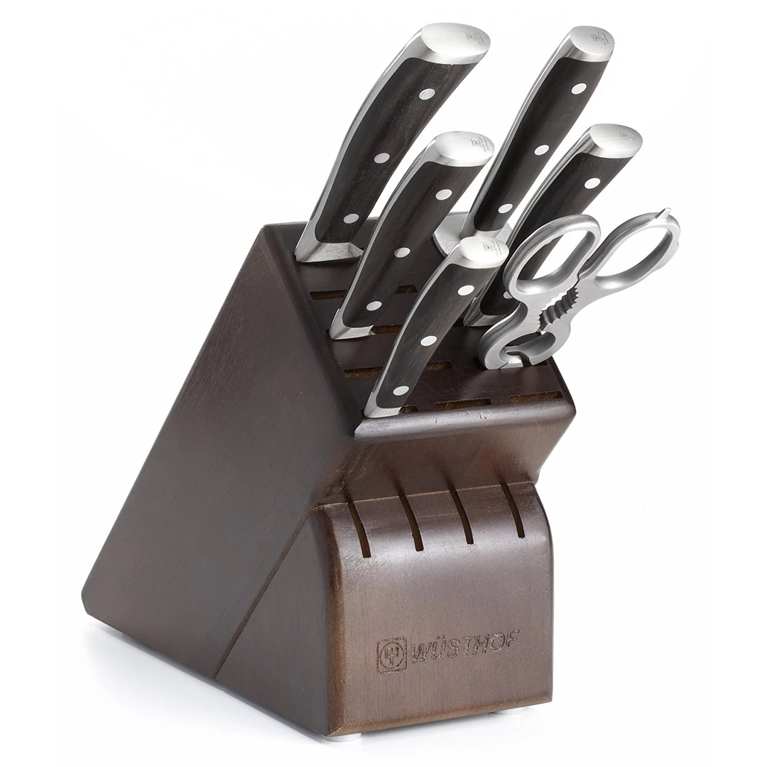The jewel of the WÜSTHOF collection, IKON has beautifully designed handles made of Grenadilla wood. Grenadilla wood, or African Blackwood, is one of the hardest and heaviest woods in the world. IKON full-tang knives are precision-forged from a single piece of exclusive high-carbon stainless steel and feature a distinctive, double bolster.