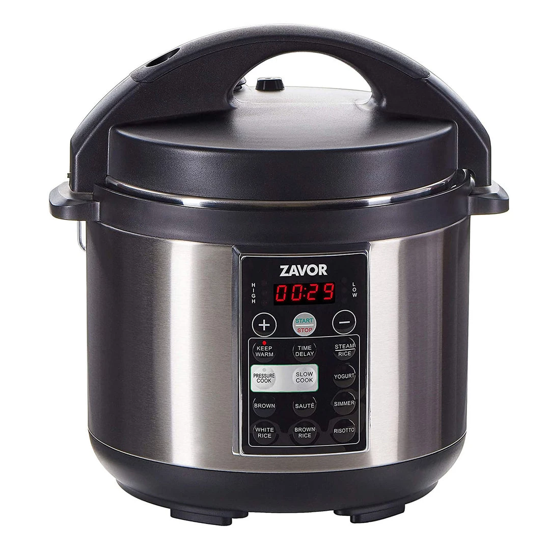 - Featured functions: pressure cooking (high and low), slow cooking (high and low), rice cooking (white rice, brown rice and risotto), yogurt making plus Steam/Rice, Simmer, Sauté, Brown, Keep Warm and Time Delay to program cooking time at your convenience.