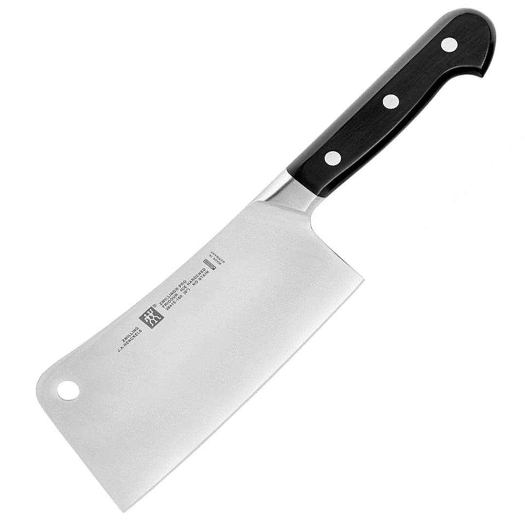 The ZWILLING Pro 6” Meat Cleaver makes tough jobs easy. Chop roast chickens and small chicken bones effortlessly with this heavy-duty cleaver. Forged from a single piece of ice-hardened steel, the blade boasts maximum durability and sharpness. Like all knives in the Pro collection, this cleaver features an innovative curved bolster grip. This allows you to use a professional pinch grip for more control and less fatigue when breaking down large cuts of meat. Cut like a Pro with this ultimate cleaver.